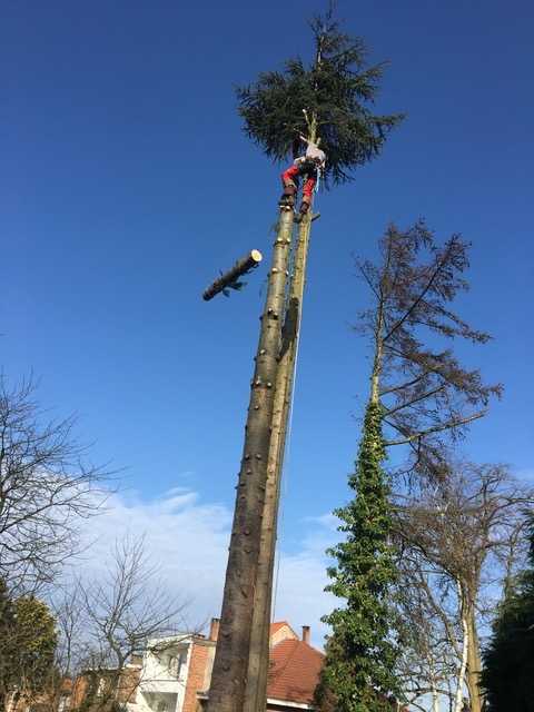 Abattage par démontage de divers résineux à Watermael-Boitsfort